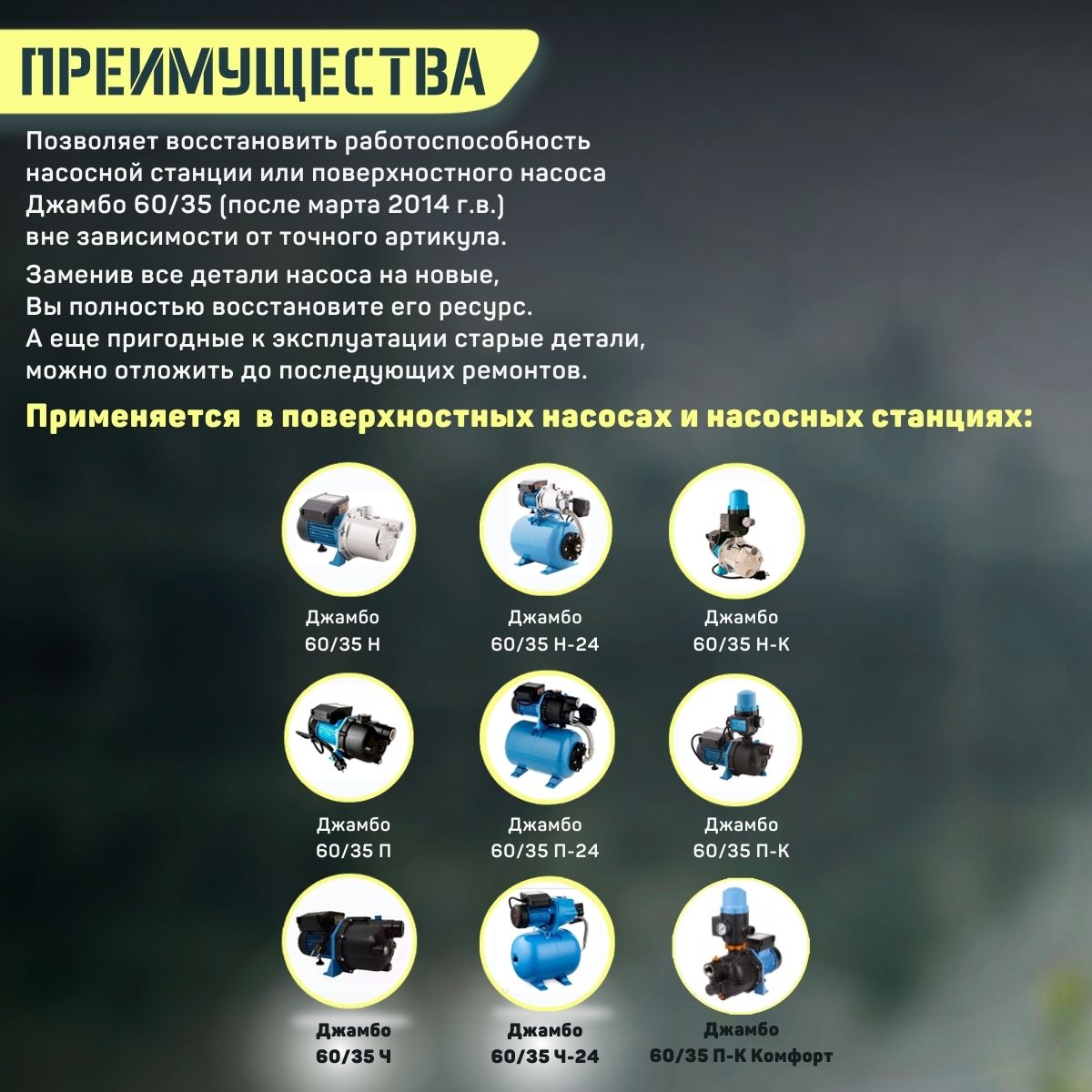 Подходит для ремонта насосов и насосных станций Джилекс Джамбо 60/35.